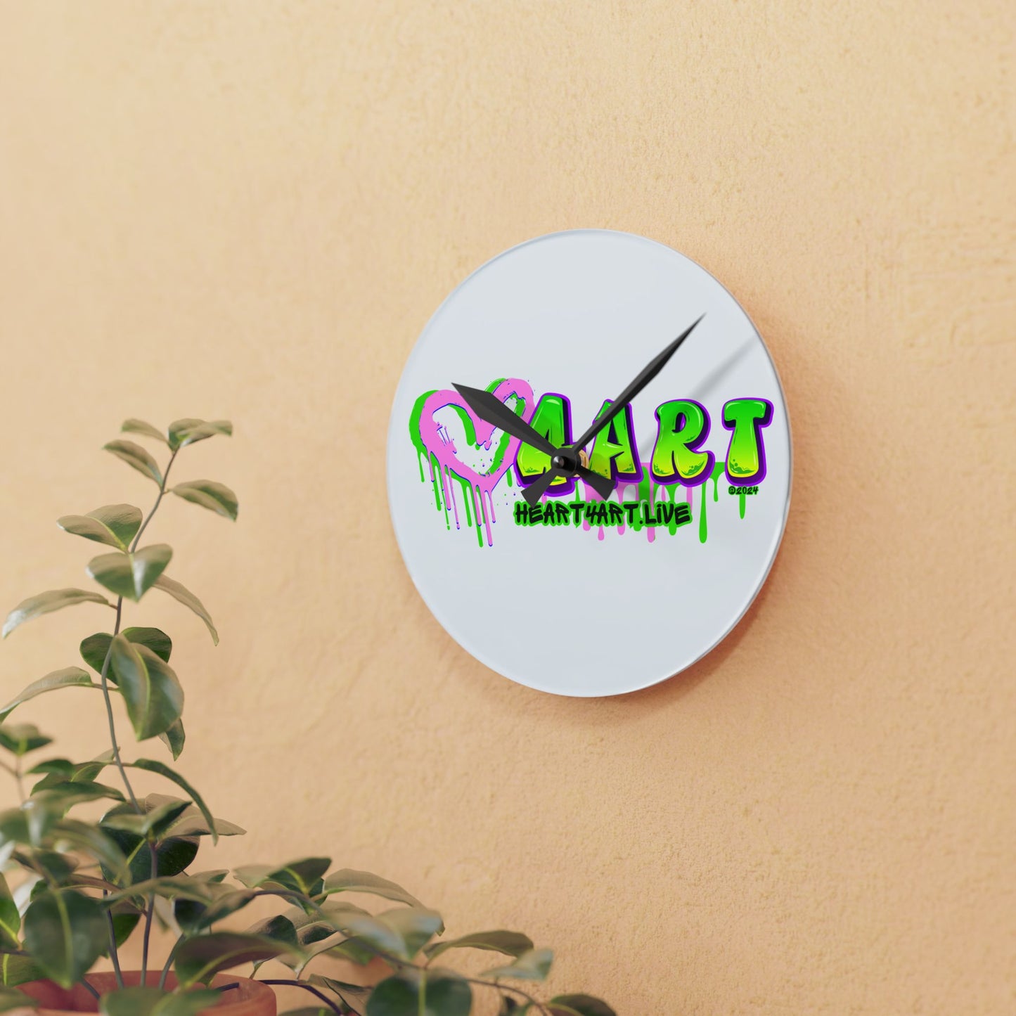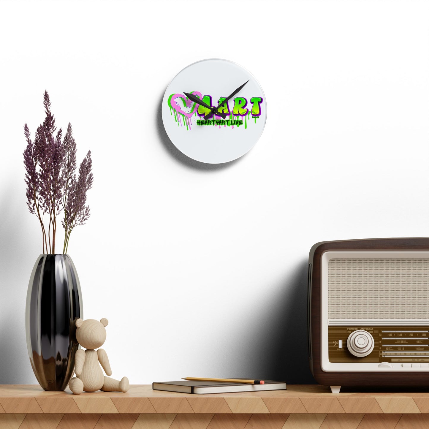 These clocks come in two shapes (round and square) and two sizes. Each clock has a keyhole at the back for easy hanging on a wall. They're made from an acrylic material that looks like glass but is more durable and sturdy.
